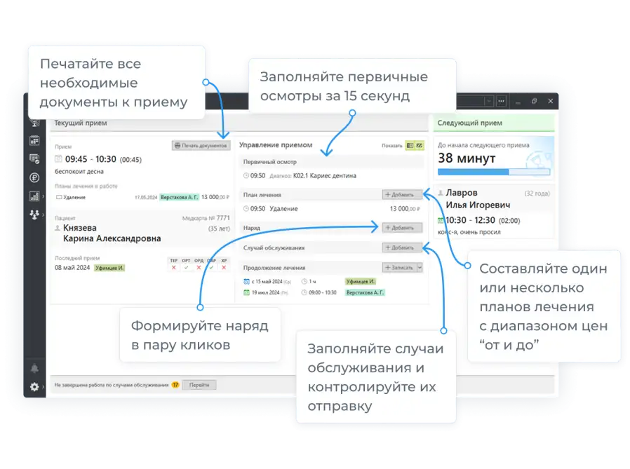 минимум бумажной работы, планы лечения в пару кликов, истории болезни за 15 сек