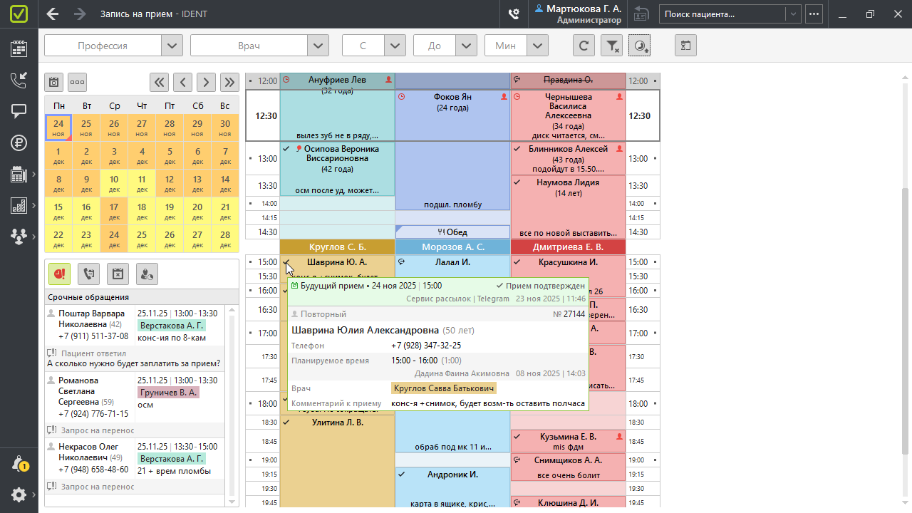 В клиниках растет запрос на автоматизацию подтверждения приемов и рассылок, поскольку эти процессы отнимают у администраторов много времени. Подходы к массовым коммуникациям у всех организованы по-своему — IDENT учитывает это и помогает гибко выстроить процесс.