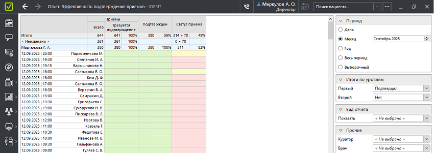 Отчет позволяет руководителю клиники контролировать процесс подтверждений и принимать решения на основе данных: корректировать сценарии взаимодействия с пациентами, управлять нагрузкой на персонал и снижать финансовые потери от неявок.