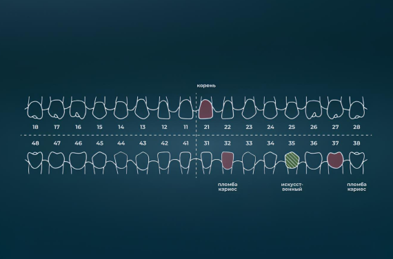Для врача зубная формула — это рабочий инструмент, с которым он привык работать каждый день: она отражает полную картину состояния зубов, включая номера и диагнозы, и помогает продумывать план лечения. Для пациента же важна простота и понятность, ведь он не знаком с медицинской терминологией и нумерацией зубов.